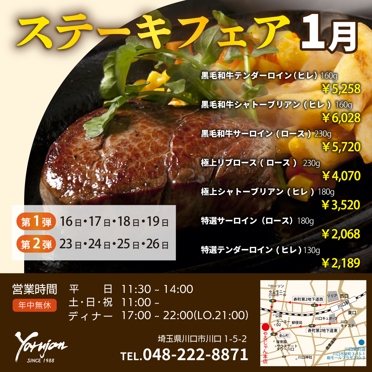 なお、ステーキフェアの開催は本店のみですのでご注意ください。