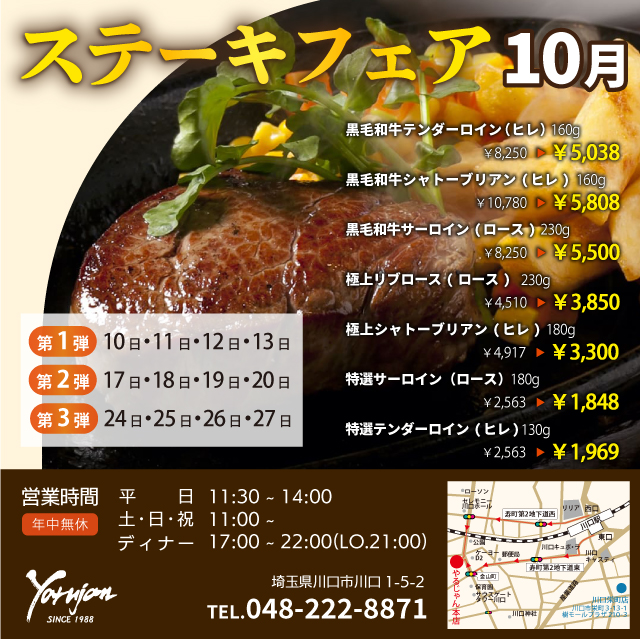 2025年10月のステーキフェア開催日は、下記の画像にてご確認くださいませ。